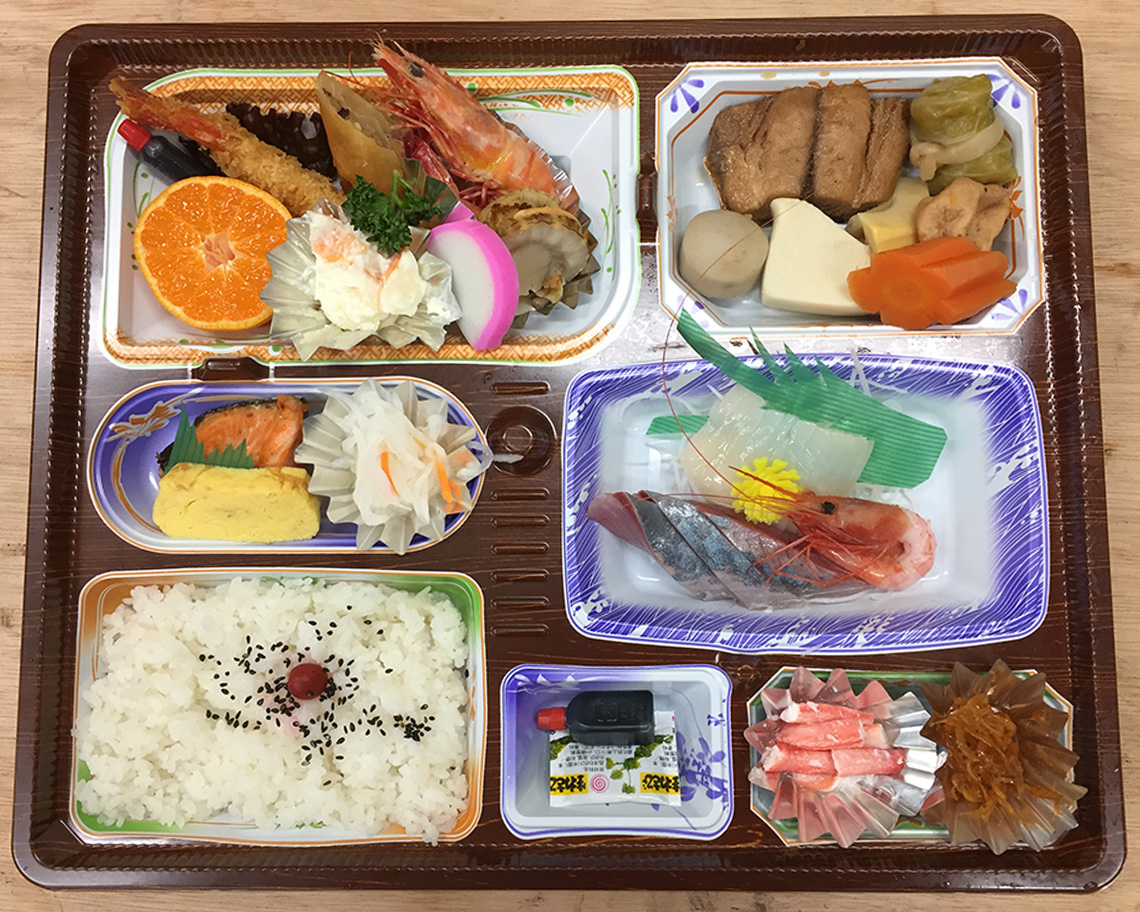 はるせんの2000円のお弁当は、新鮮なお刺身をはじめ、自慢の煮魚、海の幸などをふんだんに使った、美味しさ満点のお弁当です。